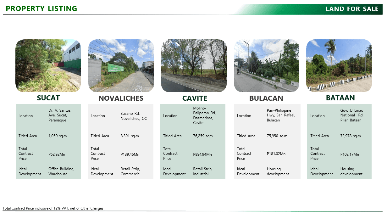 7 | Dasma Property, Salawag, Dasmariñas, Cavite | 66,588 | 12,000 | 799,056,000 |
